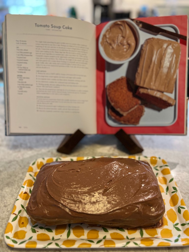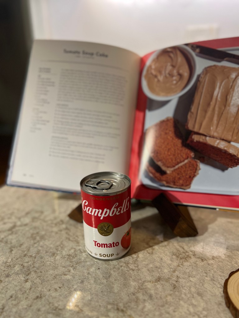 The last couple of bakes have been duds, this week I’m hoping for a “win” so of course we make a classic cake…..Tomato Soup Cake. Let’s take a trip to the 1950s and make a cake with a staple of classic Americana, Campbells Tomato Soup.