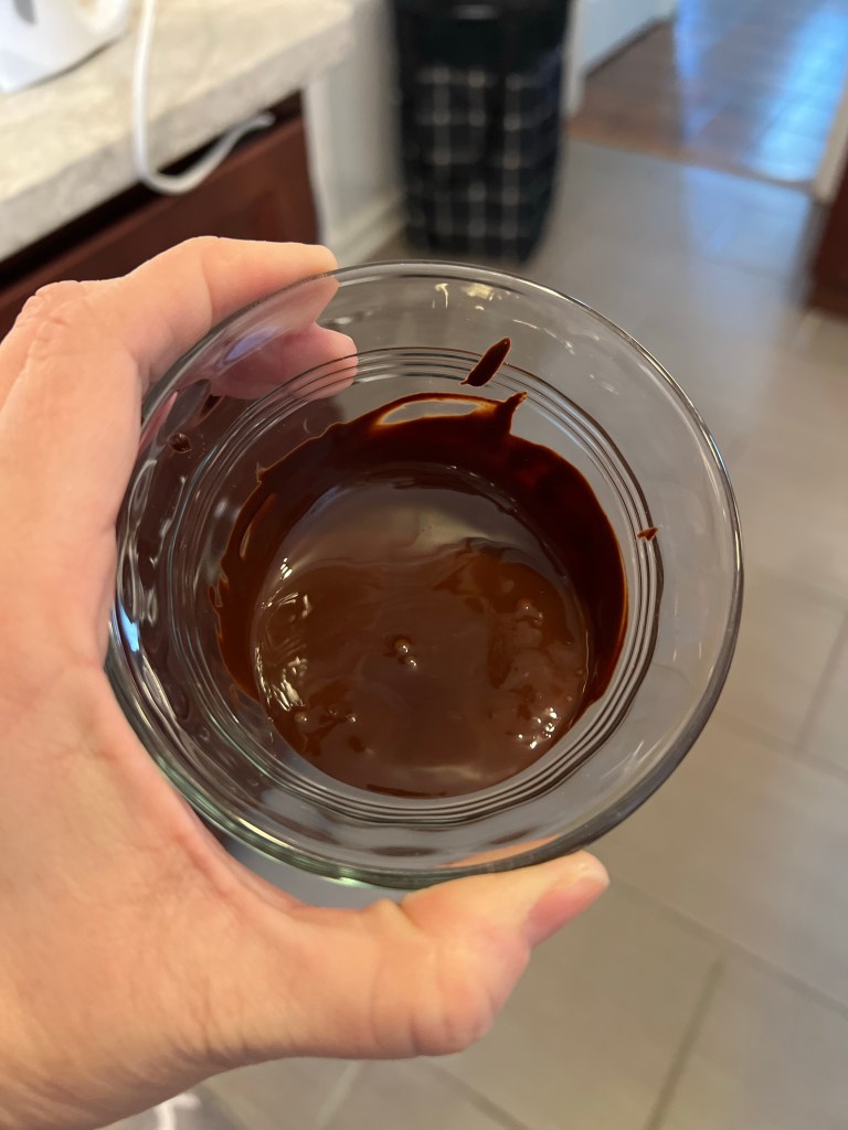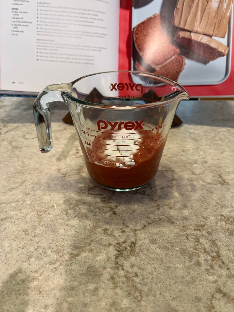 Now let’s talking about the frosting…..my first attempt at melting the chocolate did not work out. It seized up as soon as I added the vanilla.
