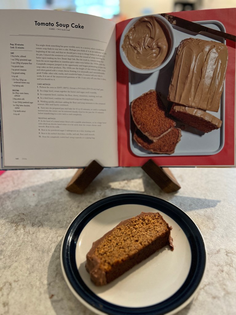 Surely, a can of condensed tomato soup can’t take the place of egg and oil. And look how flat it is, would this rise? It only called for one teaspoon of baking soda.