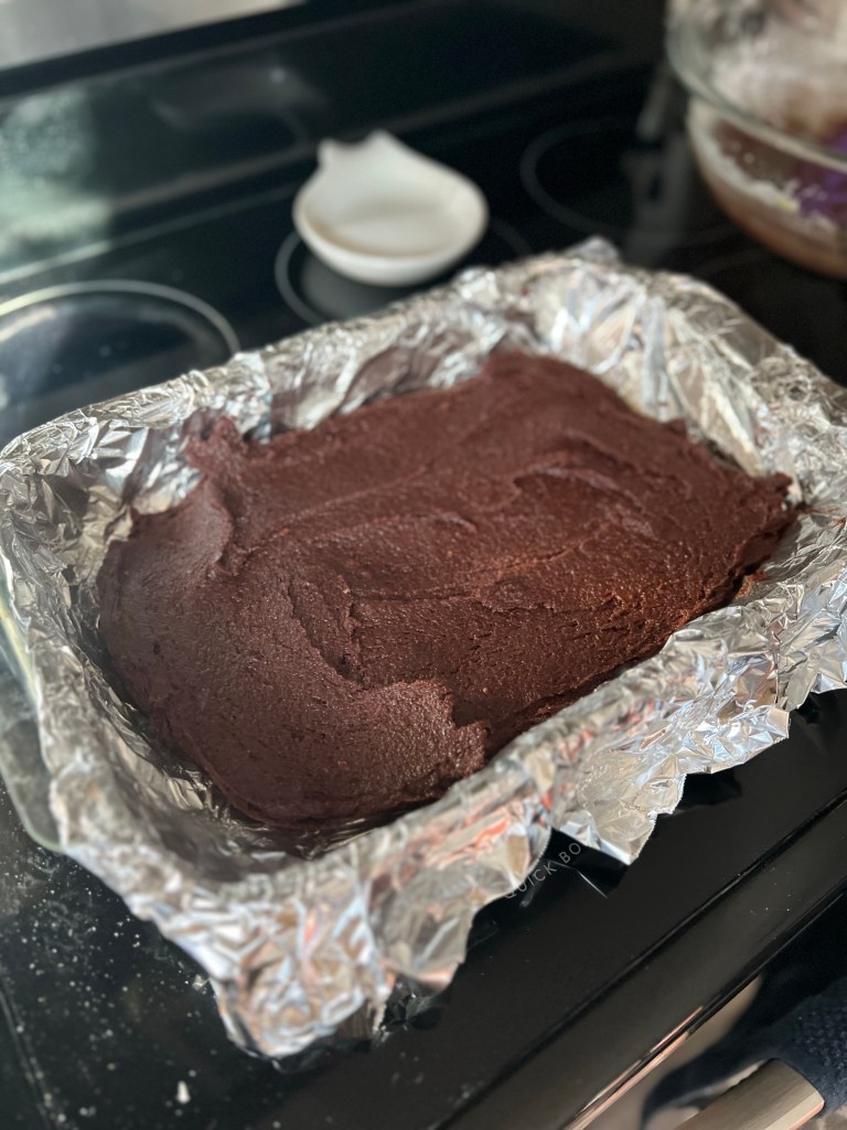 The batter was dense. I ran out of parchment paper, I ran out of parchment paper weeks ago and I keep forgetting to purchase any!